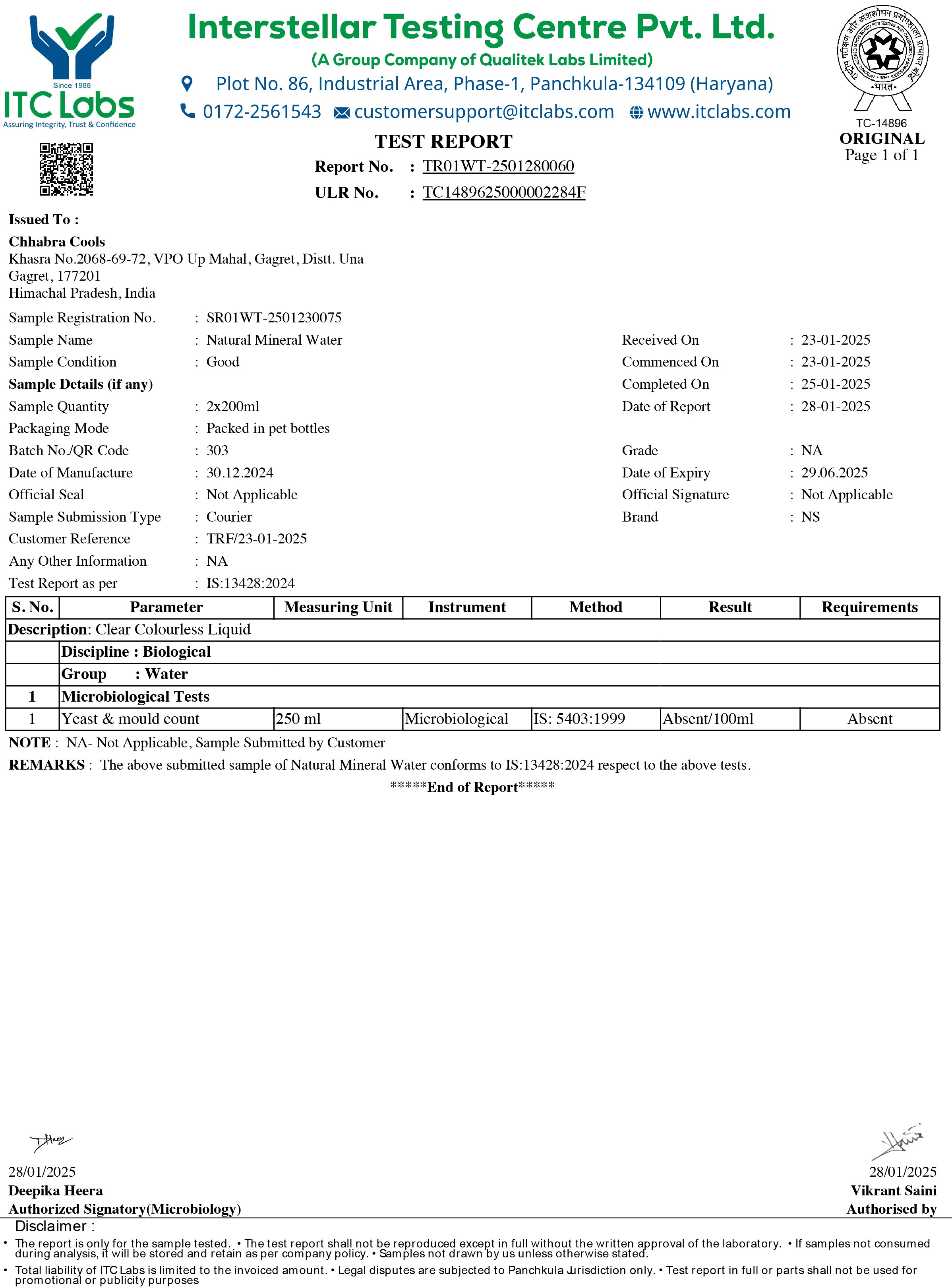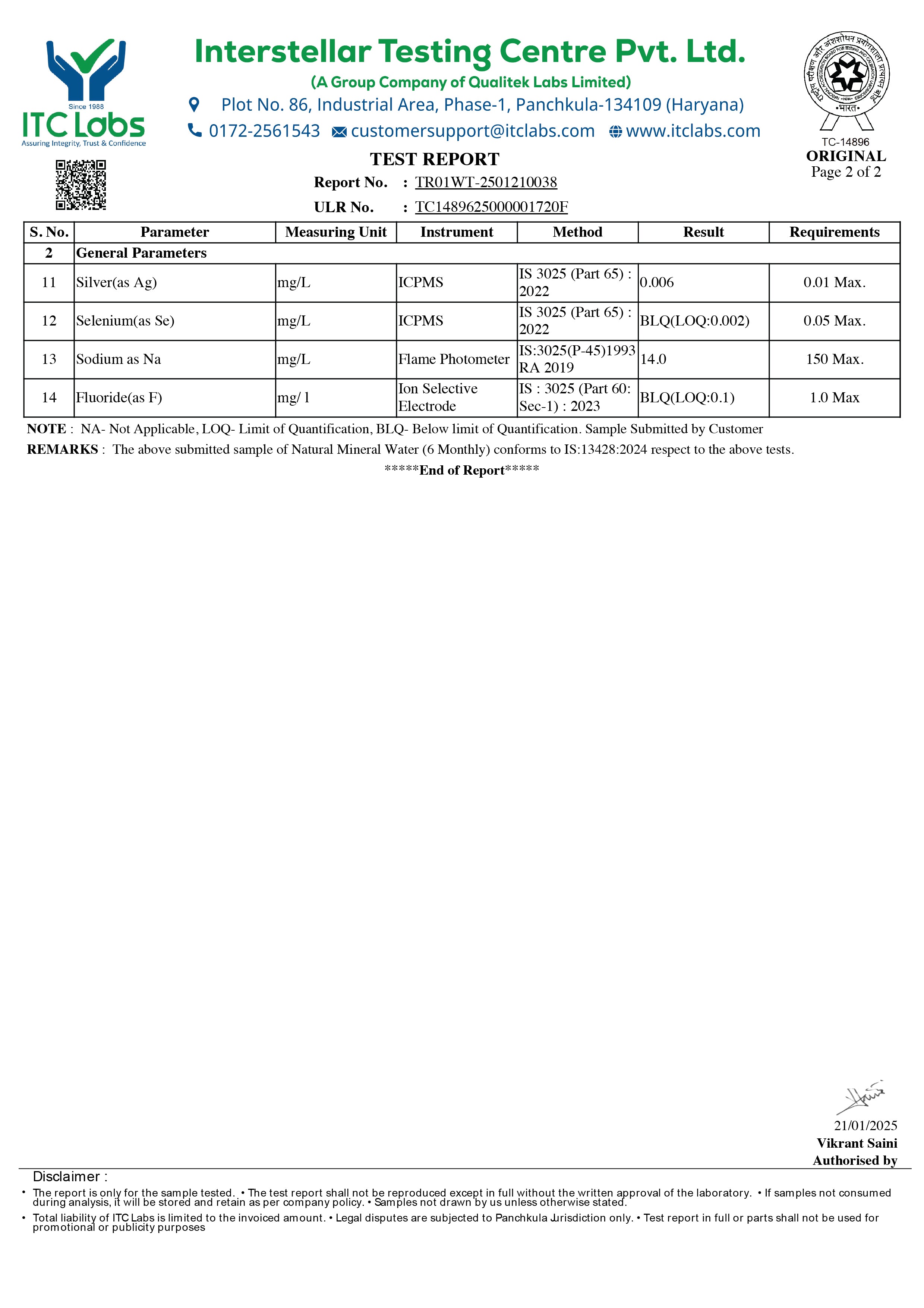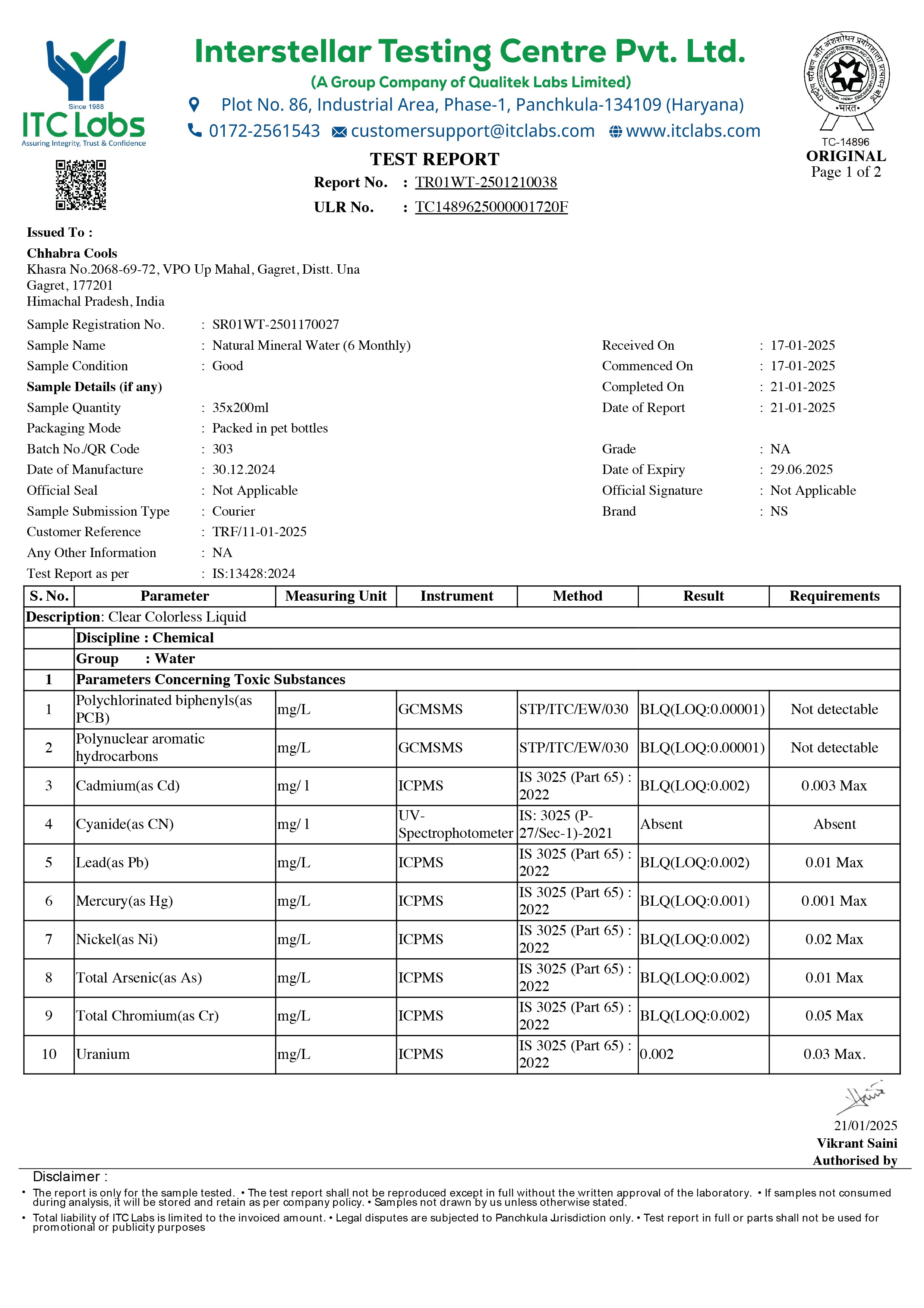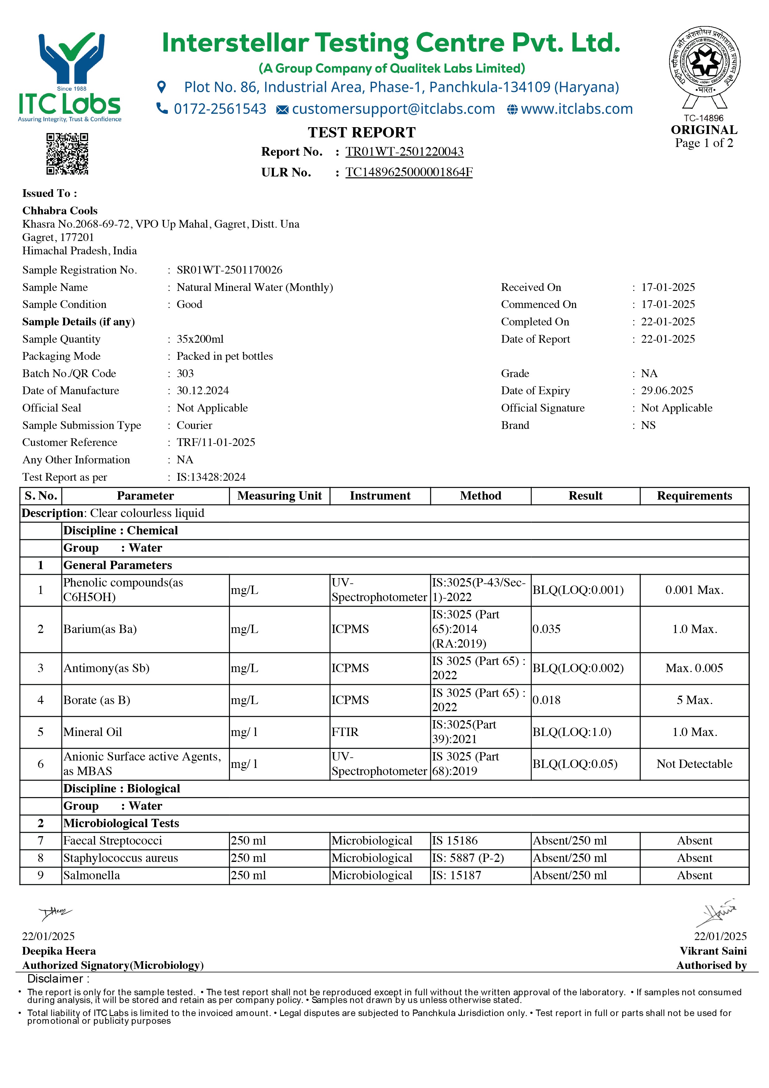 • Lab Reports Of Natural Mineral Water - Hege