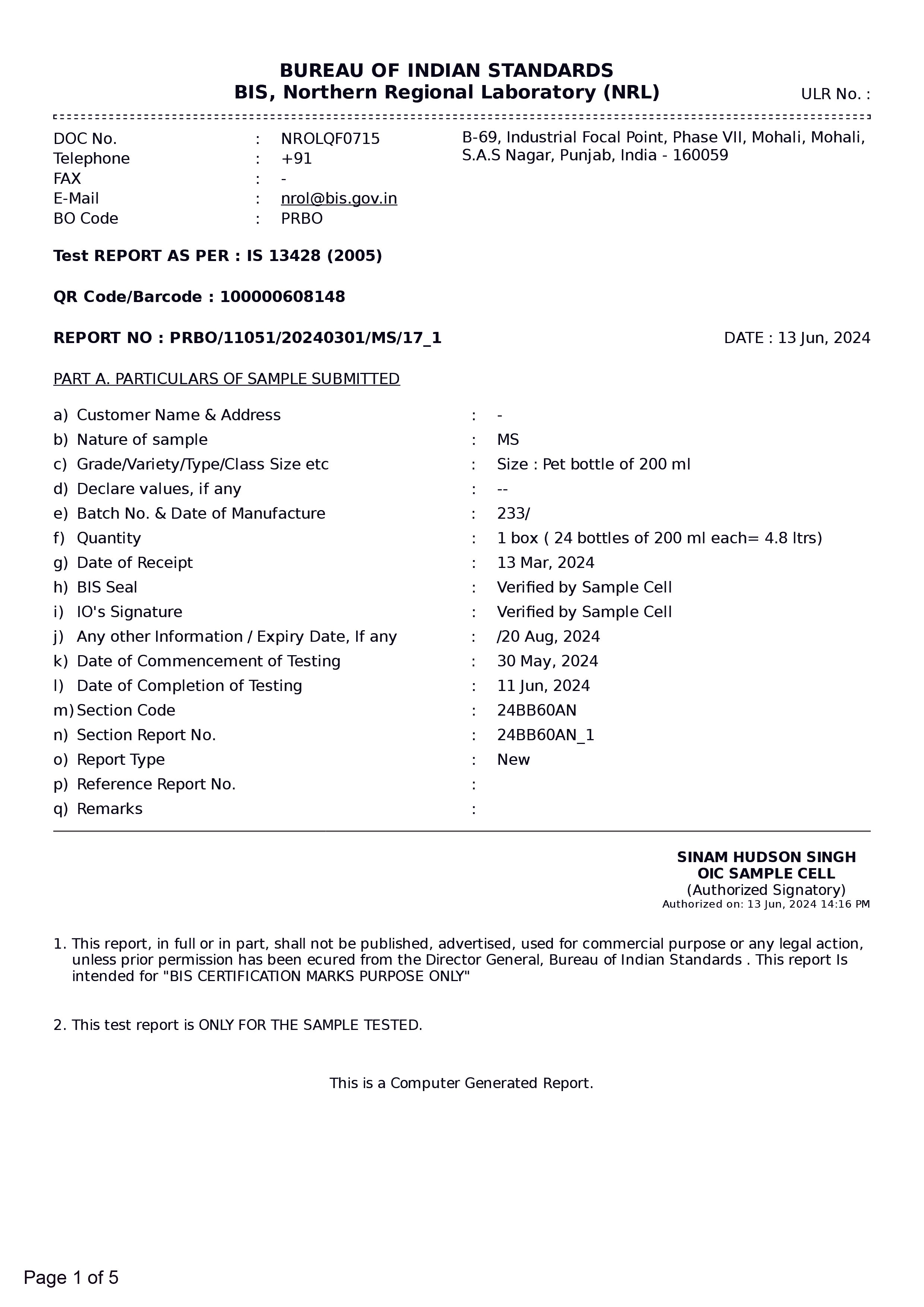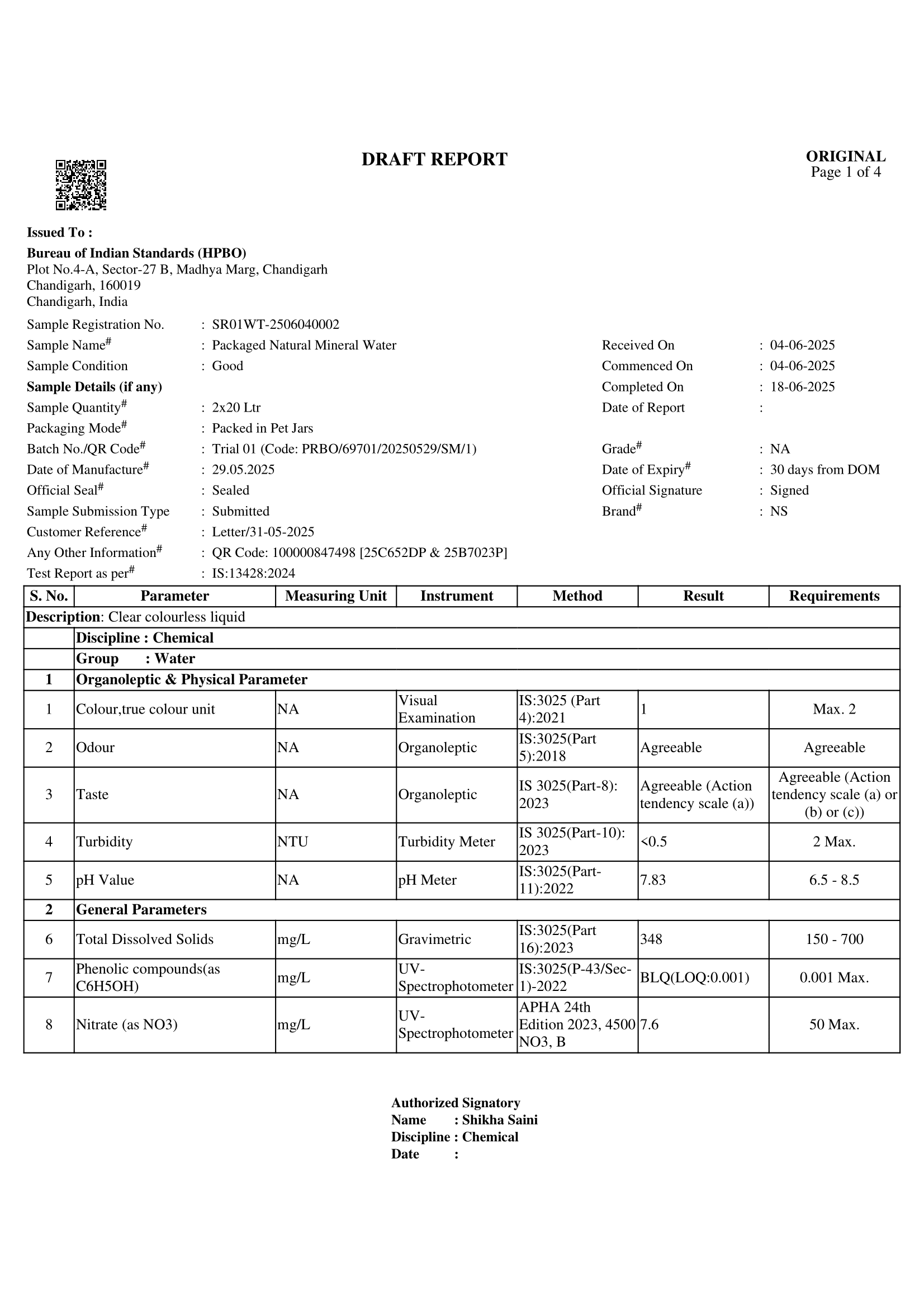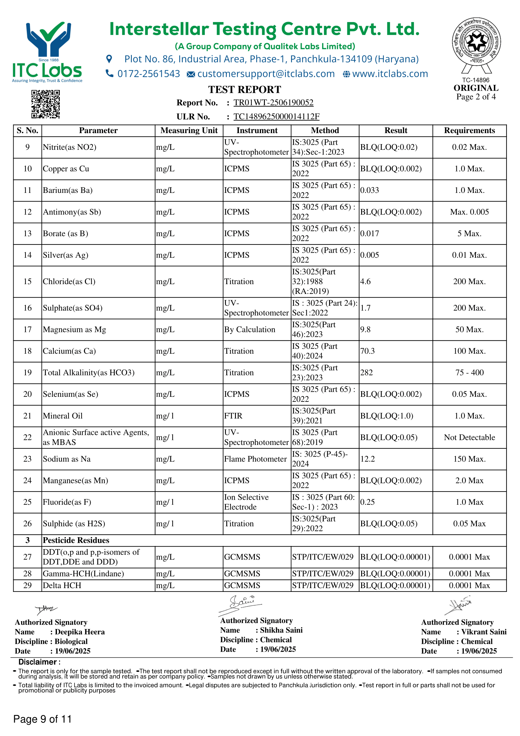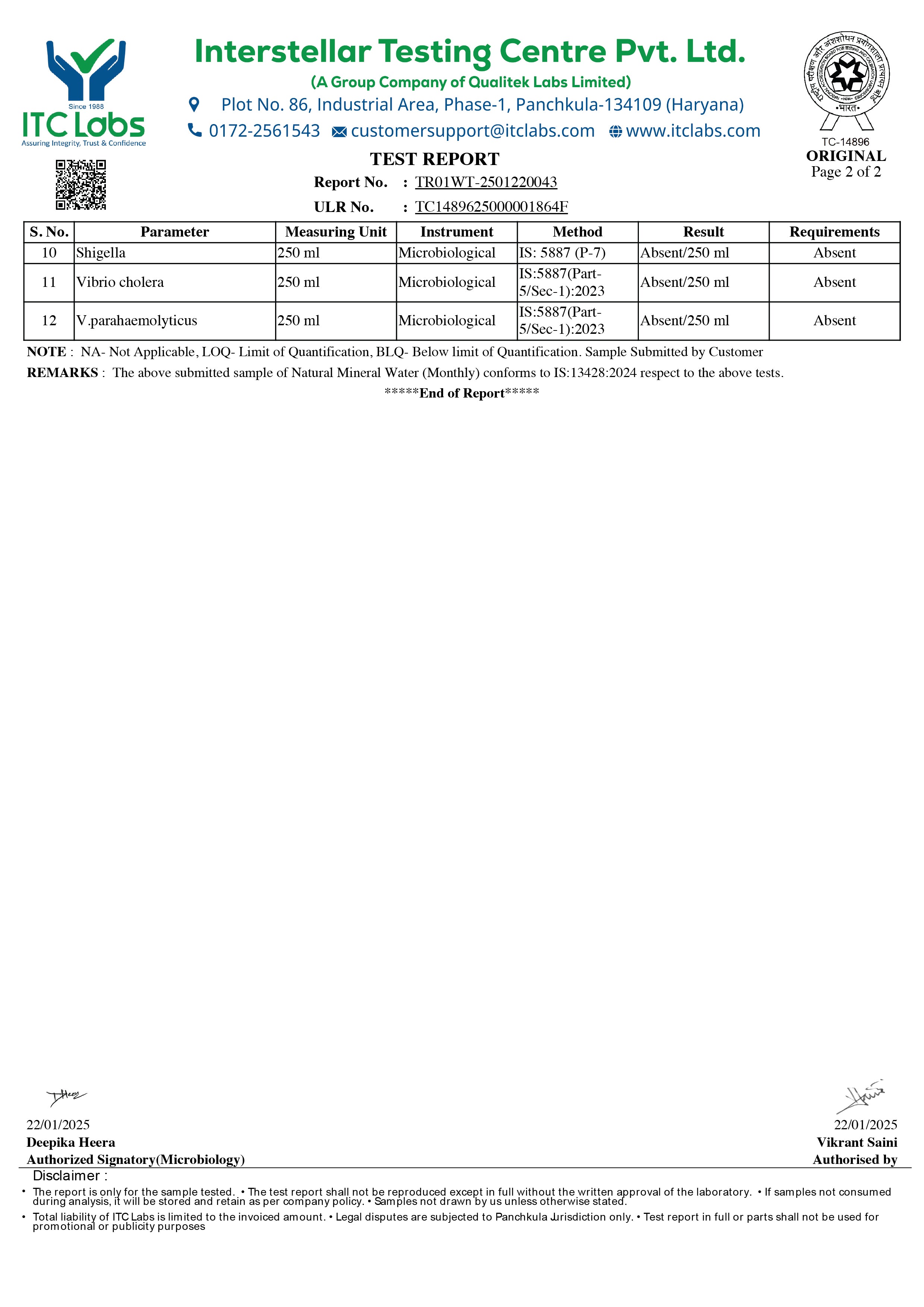 • Lab Reports Of Natural Mineral Water - Hege